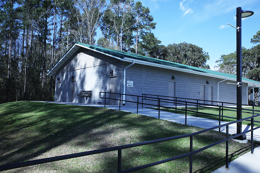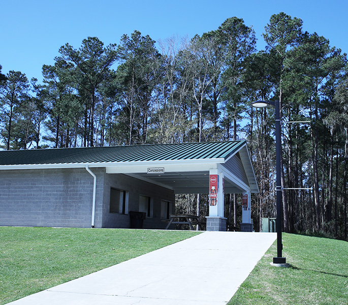 Throughout the complex are a variety of amenities, including player dugouts, spectator bleachers (some wheelchair accessible), full concessions, and heated/cooled restrooms with showers and dressing areas. Generous paved parking is located at the end of the complex off of Sallie Mood Drive, and a paved single-lane road runs through the middle of the park, allowing wheeled access to all of the fields on either side.