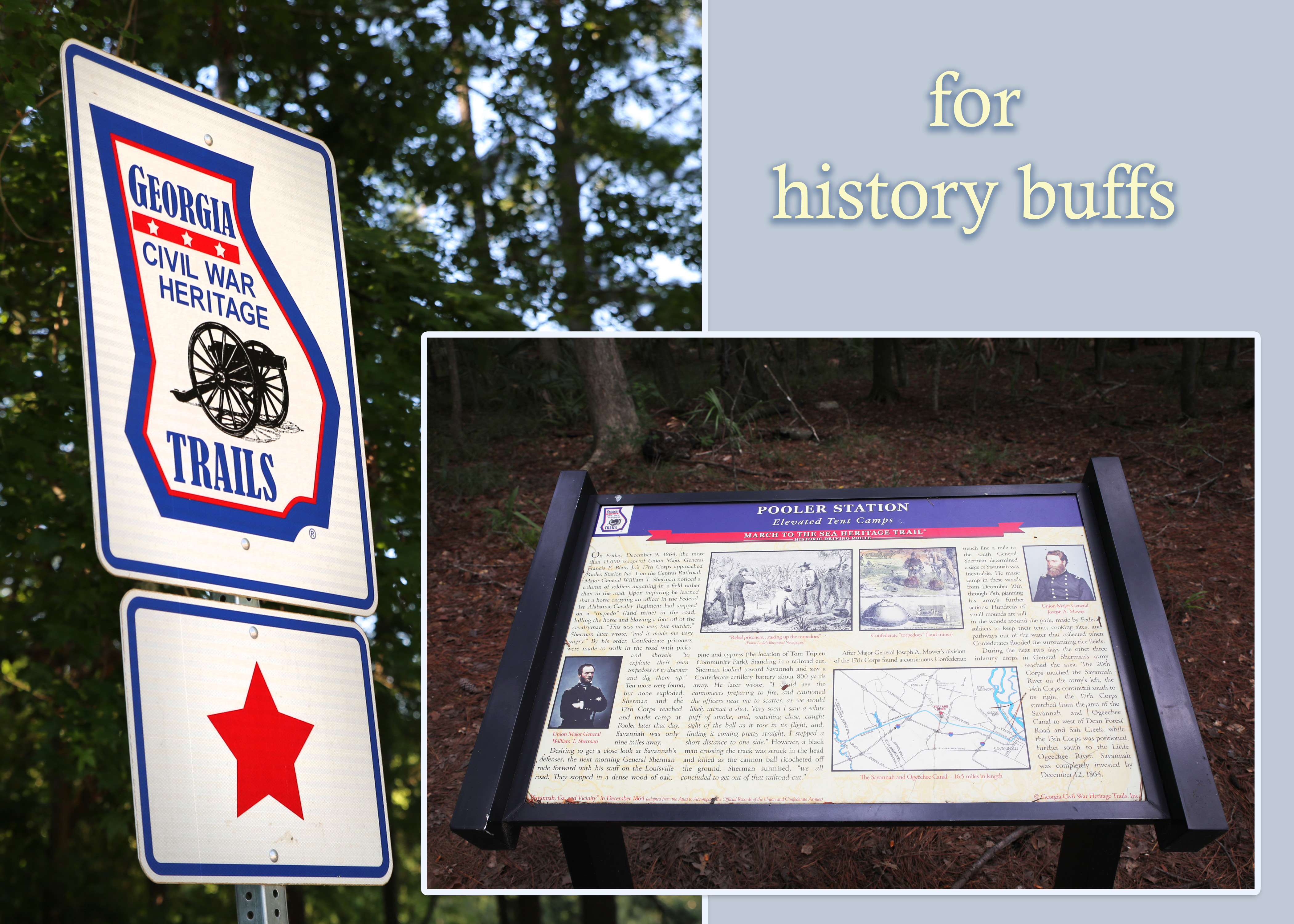 Those looking for history will also find it highlighted on these grounds, as the land that is now Tom Triplett Park is a historically recognized stop on the Civil War Heritage Trail. Markers and information stations give a historical account of the union army’s March To The Sea as General Sherman encamped on this land in his approach to Savannah in 1864.